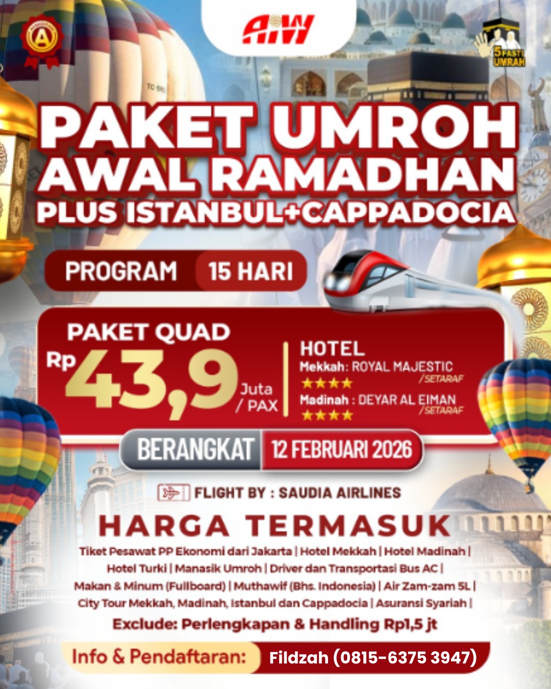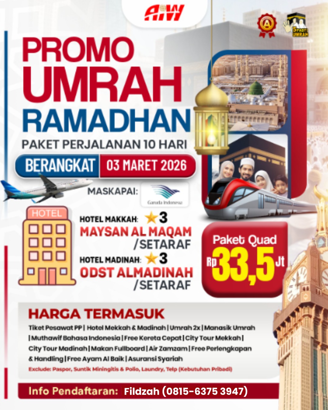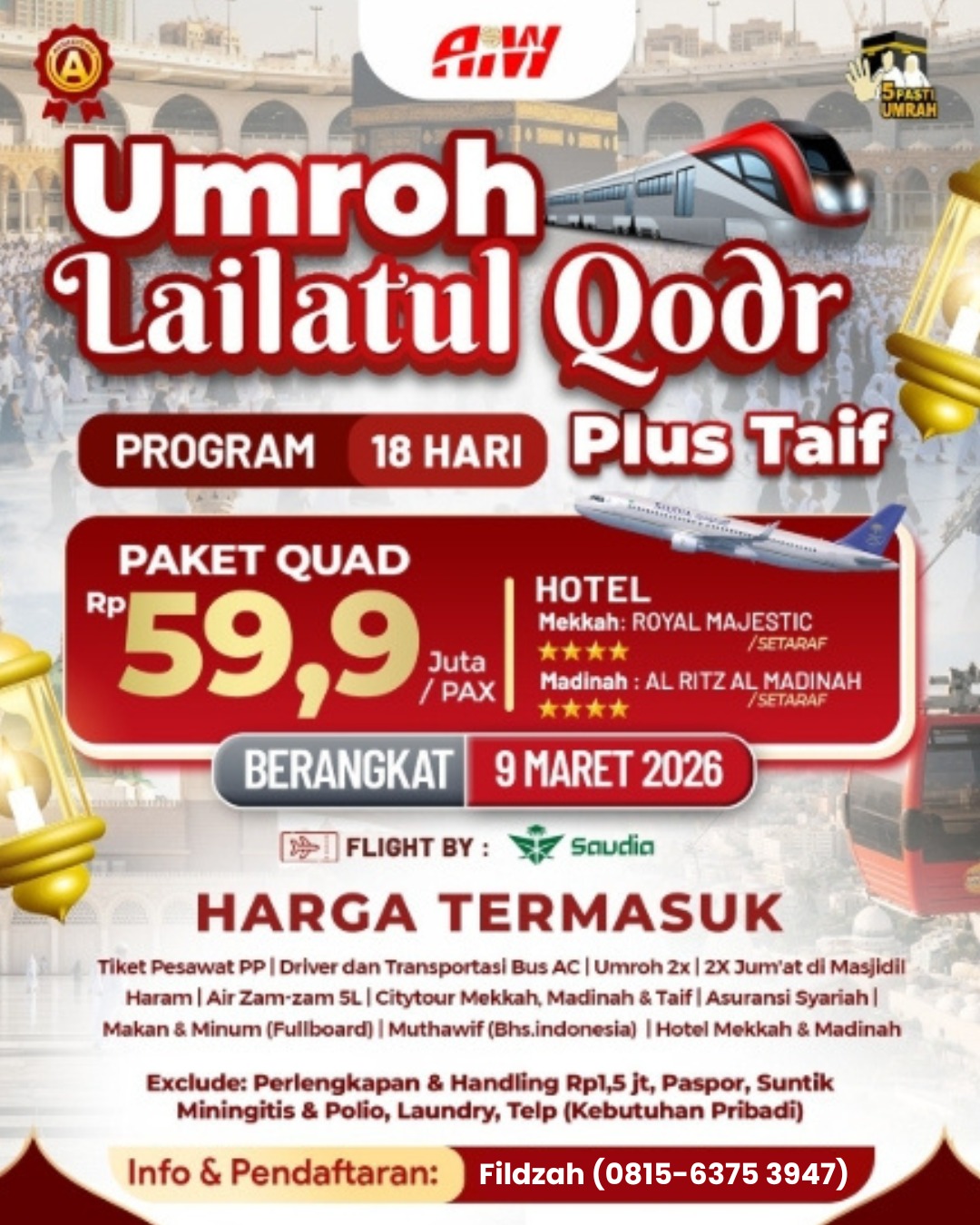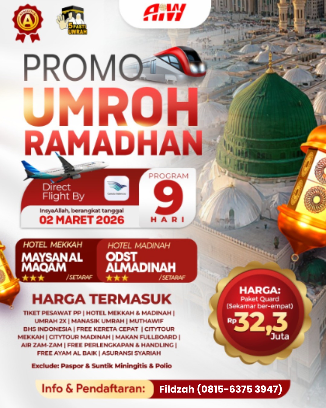 Seluruh paket umroh 100% sudah tertera tanggal berangkat, nomor pesawat & Itinerary perjalanan. Keberangkatan Padat Setiap Pekan.