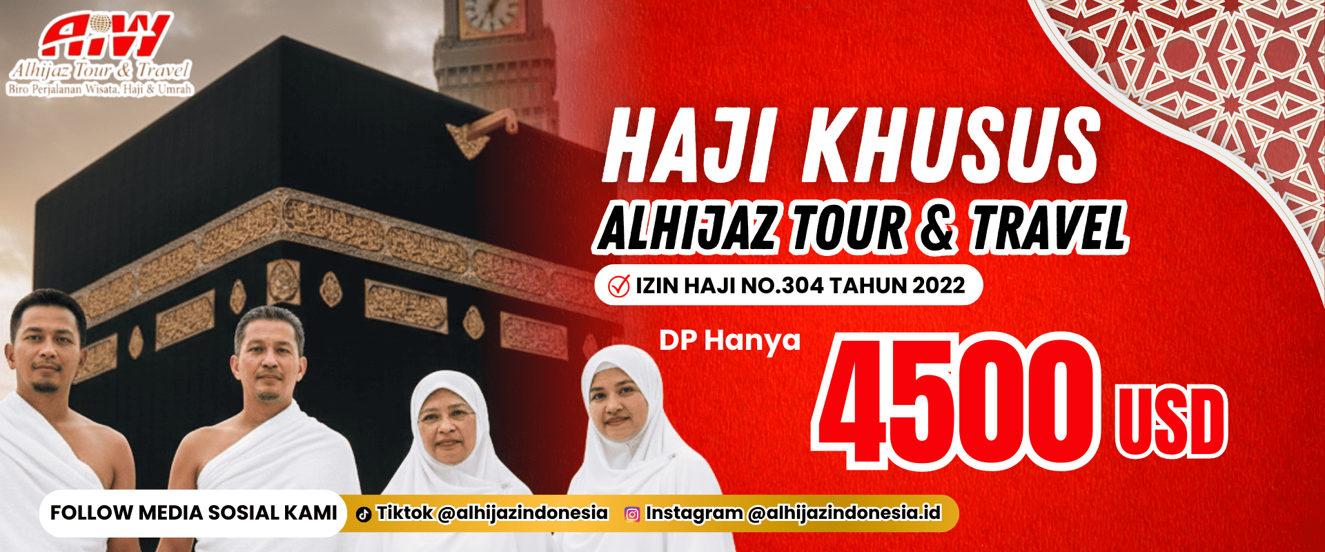 Dengan uang muka $4.500. Uang muka kami setor ke rekening BPKH Kemenag untuk mendapatkan nomor Porsi maksimal 2x24 jam