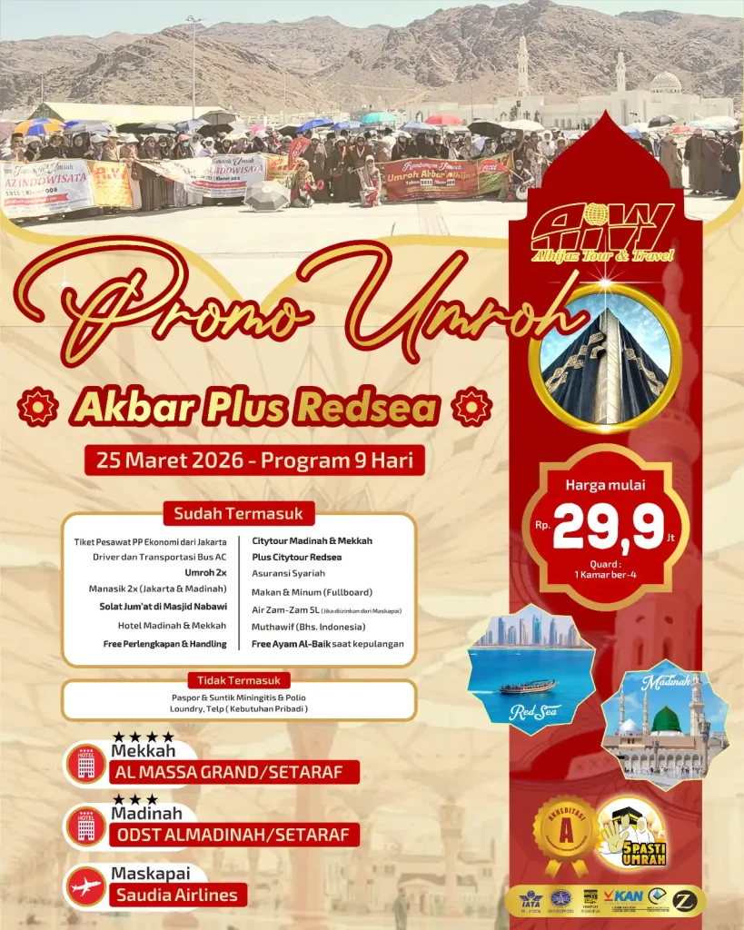 Seluruh paket umroh sudah tertera tanggal keberangkatan,nomor pesawat & Itinerary perjalanan.